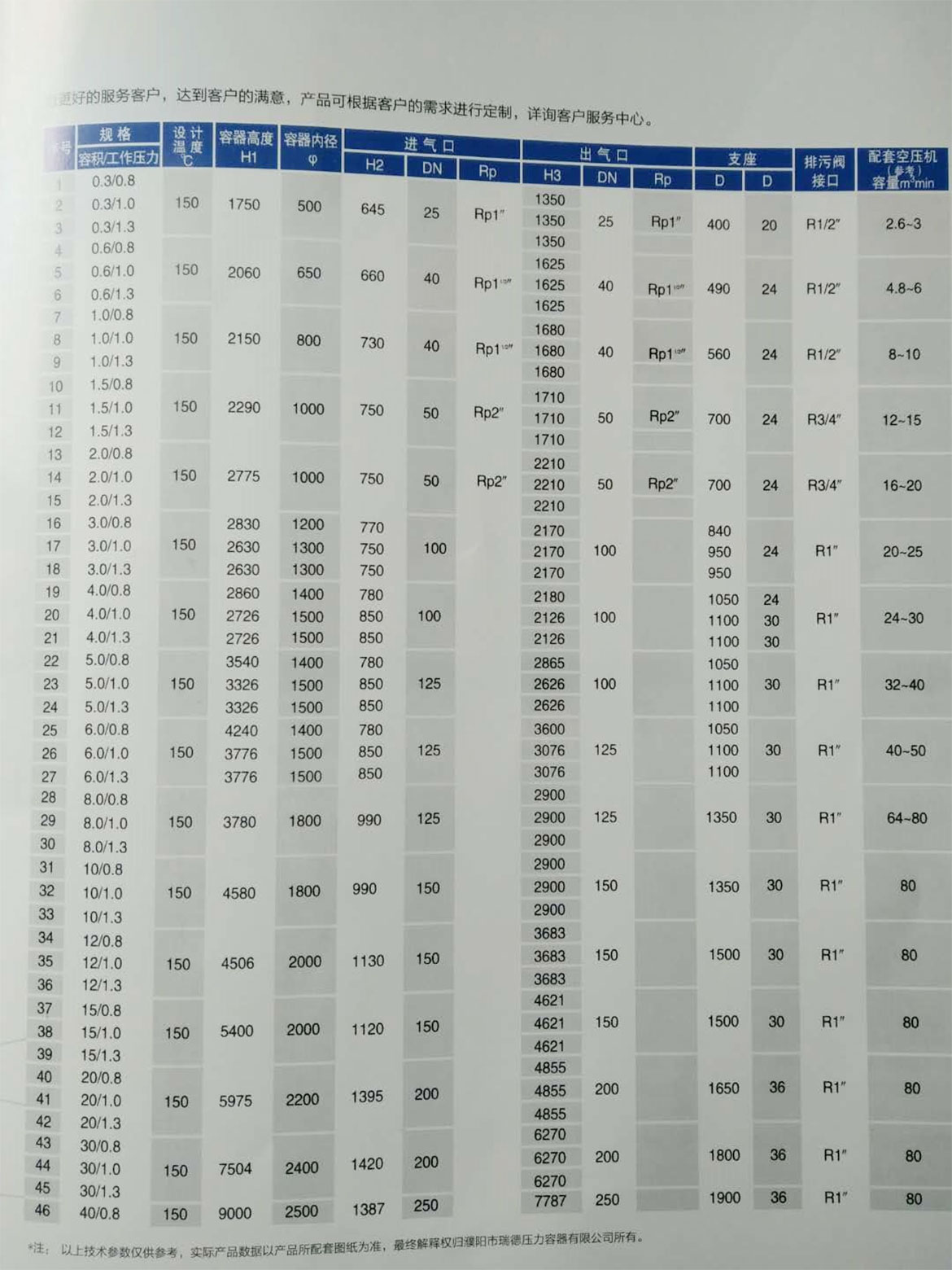 三、壓縮空氣儲(chǔ)氣罐選型: