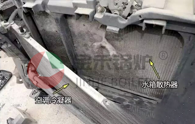 對(duì)于冷凝器的散熱功效,不一定就是冷凝器本身臟污,很可能是水箱臟污導(dǎo)致的散熱不良。我們常見的車輛上,一般會(huì)把冷凝器布置在水箱的前方,空氣中臟污很多情況都會(huì)堆積在冷凝器和水箱之間,尤其在水箱的前方會(huì)存留大量的絮狀堵塞物,影響散熱氣流。從而引發(fā)冷凝器散熱不良,空調(diào)系統(tǒng)的制冷效果不佳。