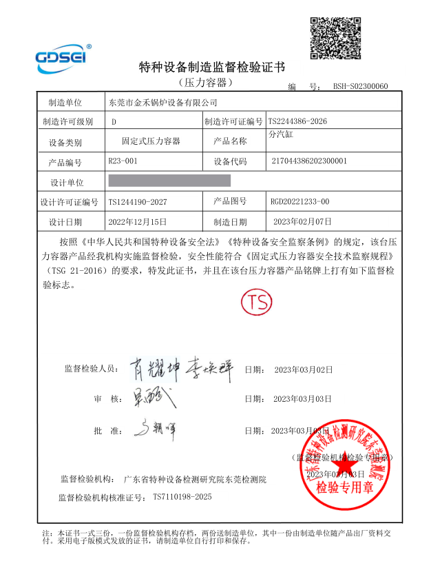 Dongguan Jinhe boiler Equipment Co., Ltd. headquartered in Humen, Dongguan covers an area of 10,000 square meters, including office, research and development, the National Customer Service Center covers an area of 2,400 square meters. The company has established a "boiler, pressure pipe installation quality assurance system", and has appointed the quality assurance engineers and quality control system responsible personnel, Quality Assurance System documents prepared, to provide customers with compliance with regulatory standards, safe and reliable quality service, and strive to make greater contribution to the prosperity of Social Economy and Environmental Protection.