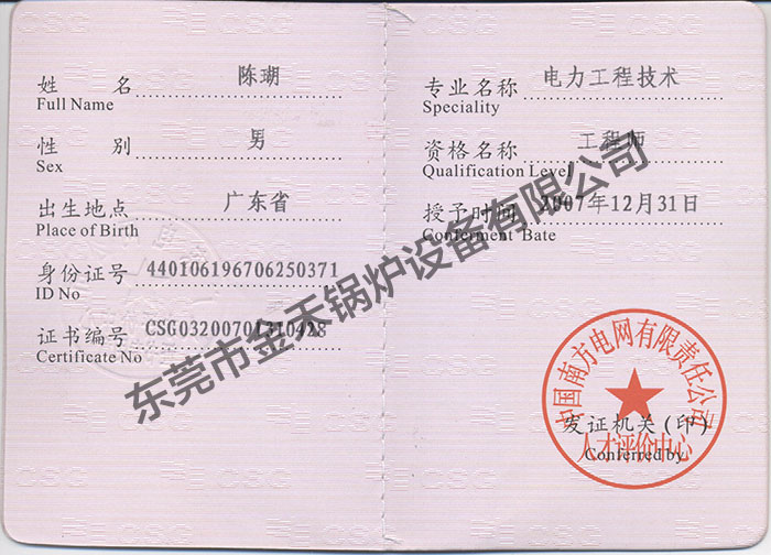 現(xiàn)任:東莞市金禾鍋爐設(shè)備有限公司防腐保溫、起重責(zé)任人