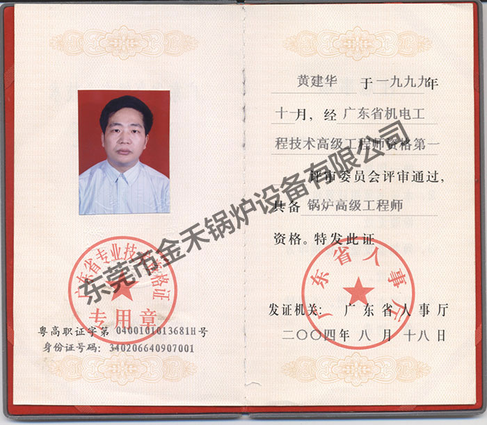 現任:東莞市金禾鍋爐設備有限公司高級工程師。